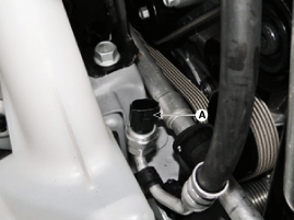 Disconnect the A/C pressure transducer connector (A).