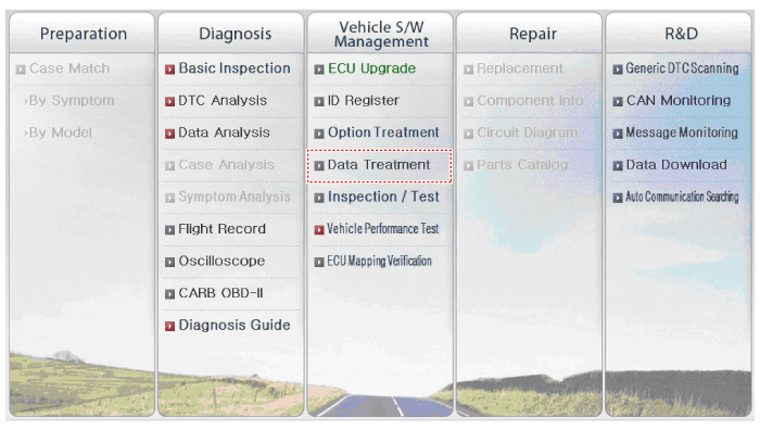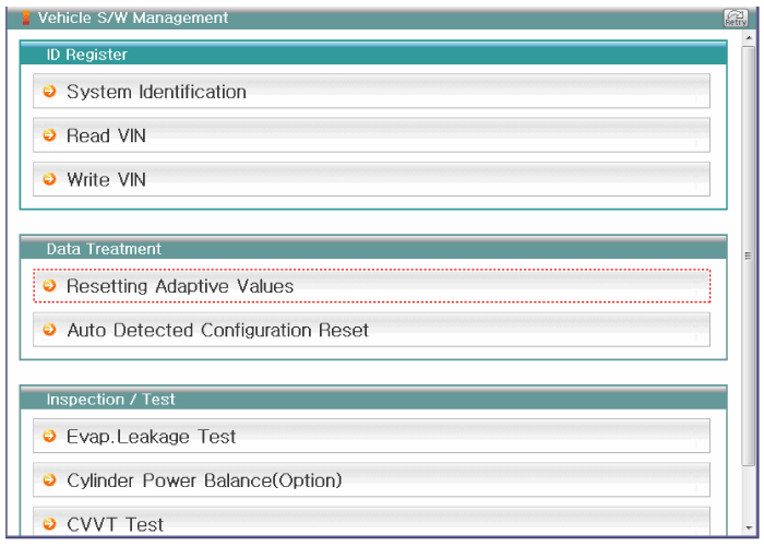 Select "Data Treatment", to reset the ETC adaptive value.