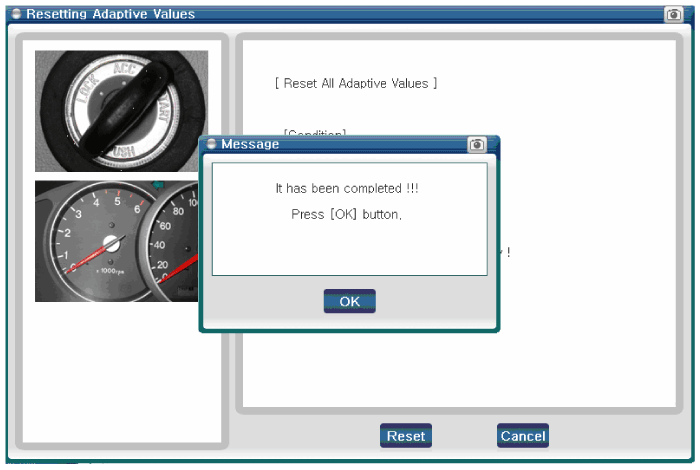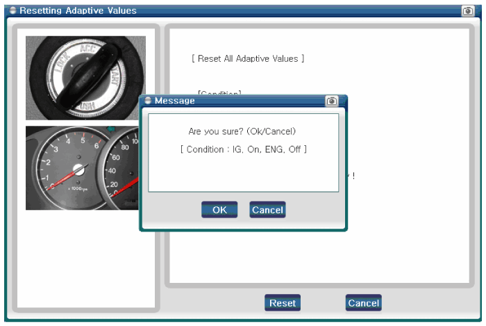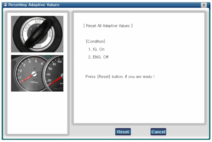 Select "Reset", then wait 10 seconds after turning ignition key