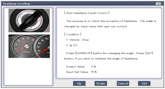 Confirm that AHLS operate forcefully in "Head lamp leveling" menu.