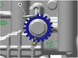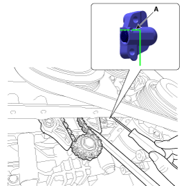 Insert a stopper pin (A) on the BSM to hold the sprocket at the reference