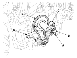 Install the balance shaft chain (E).