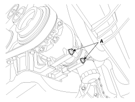 Remove the A/C compressor lower mounting bolts (A).