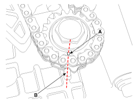 Confirm that the sprocket timing mark (A) is visually aligned