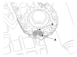 Install the balance shaft chain tensioner (B) then remove the stopper