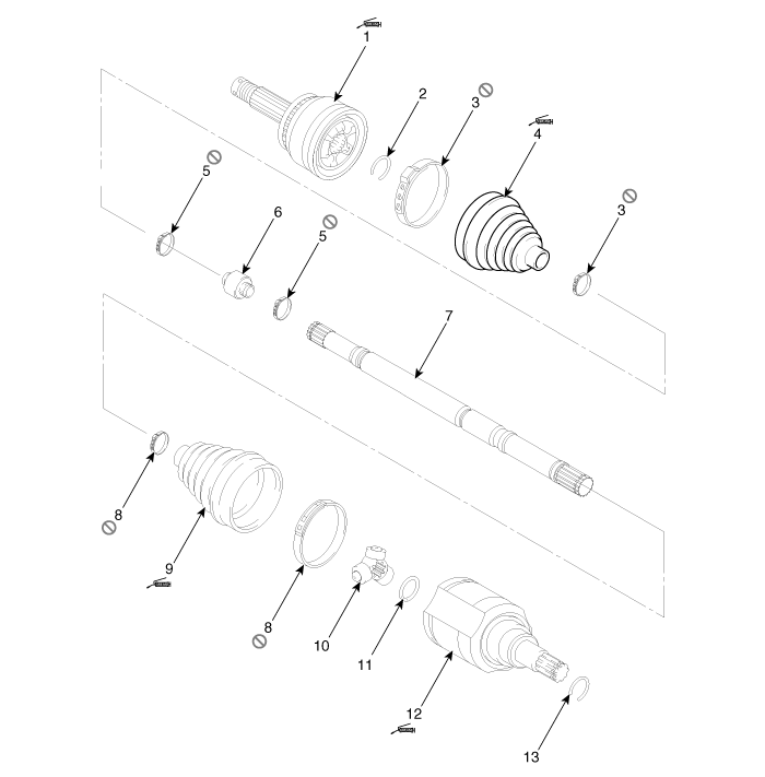 5. Dynamic damper band 6. Dynamic damper 7. Shaft 8. TJ boot band |