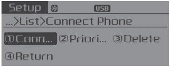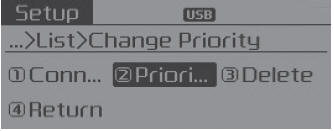 From the paired phone list, select the phone you want to switch to the highest priority, then select [Change Priority] button from the Menu. The selected device will be changed to the highest priority.