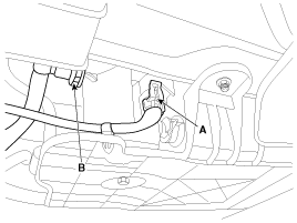 Disconnect the ventilation tube quick-connector (B) from the fuel