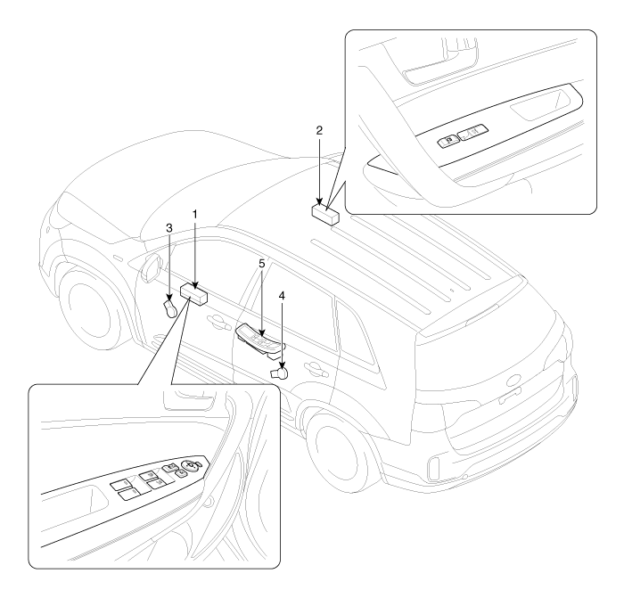 Second Generation XM (2011-2025) / Kia Sorento XM 2011-2025 Service Manual / Body Electrical System / Power Windows / Component Location