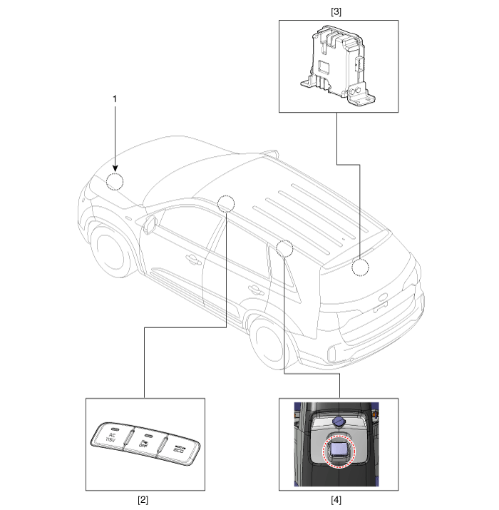 Second Generation XM (2011-2025) / Kia Sorento XM 2011-2025 Service Manual / Body Electrical System / AC Inverter System / Component Location