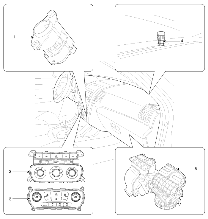 Kia Sorento: Component Location - Air conditioning System - Heating,Ventilation And Air Conditioning - Kia Sorento XM 2011-2025 Service ManualKia Sorento: Component Location