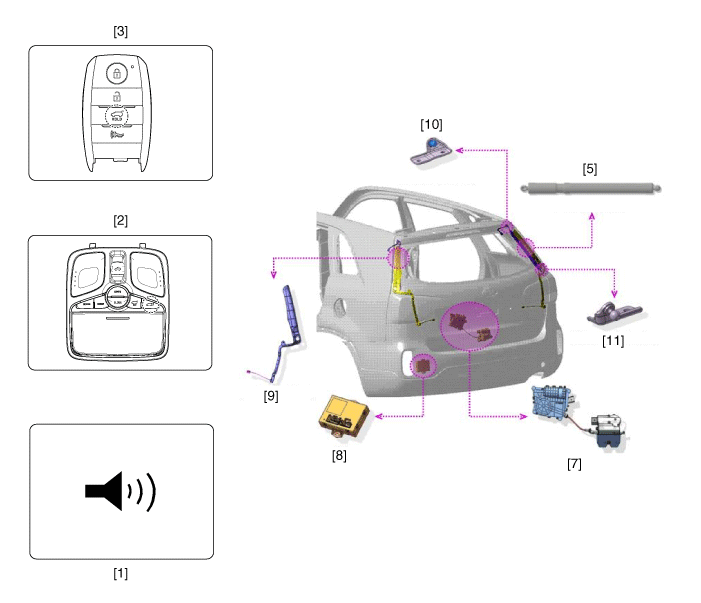 Second Generation XM (2011-2025) / Kia Sorento XM 2011-2025 Service Manual / Body Electrical System / Power Tailgate Module / Component Location (1)