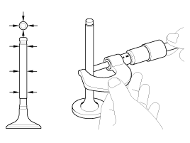 Using a micrometer, measure the diameter of the valve stem.