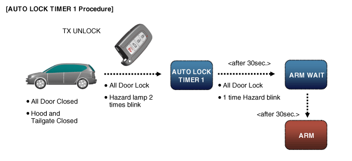 When “Lock command” operated, All Door changed lock and closed then B/A state changes “AUTOLOCKTIMER1” to “ARMWAIT
