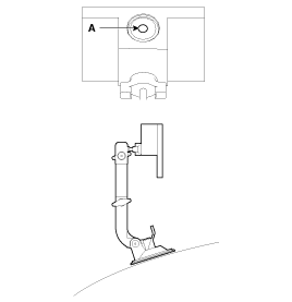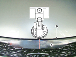 Install the target jig at the end of the hood (B) after aligning the center (A) of the target jig and emblem.