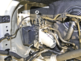 Loosen the HECU bracket nuts (A) and then remove HECU and bracket.