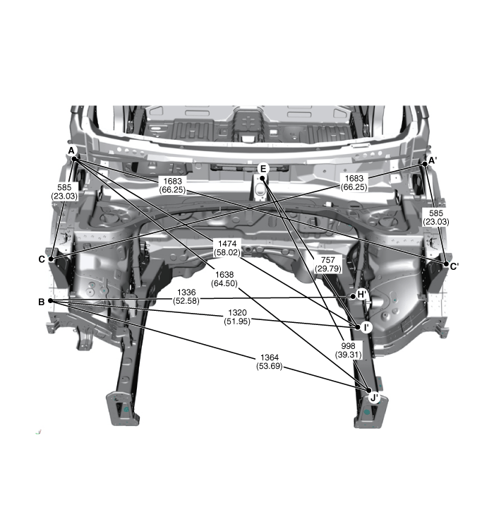 Kia Sorento: Front Body C - Body Dimensions - Body (Interior and Exterior) - Kia Sorento XM 2011-2025 Service ManualKia Sorento: Front Body C