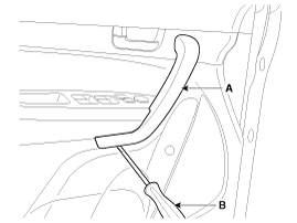 Using a screwdriver (B), remove the door grip handle cover (A).