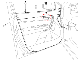 Using a screwdriver, remove the door inside handle cap (B).