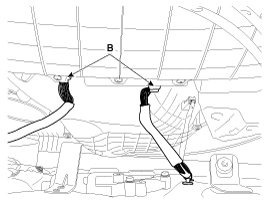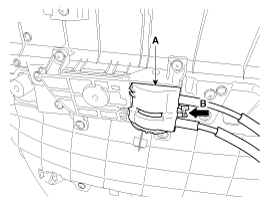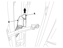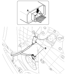 Push the lock pin (B), disconnect the connector (A).