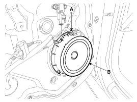 Push the lock pin (B), disconnect the tweeter speaker connector