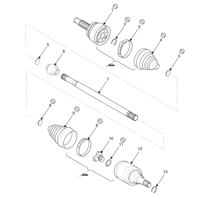 Kia Sorento: Front Driveshaft Components - Driveshaft Assembly - Driveshaft and axle - Kia Sorento XM 2011-2025 Service ManualKia Sorento: Front Driveshaft Components