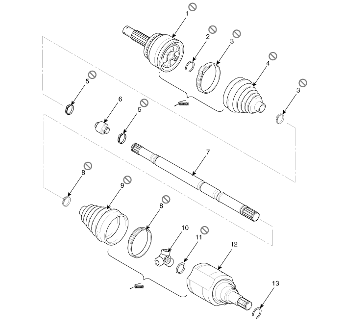Second Generation XM (2011-2025) / Kia Sorento XM 2011-2025 Service Manual / Driveshaft and axle / Driveshaft Assembly / Front Driveshaft Components