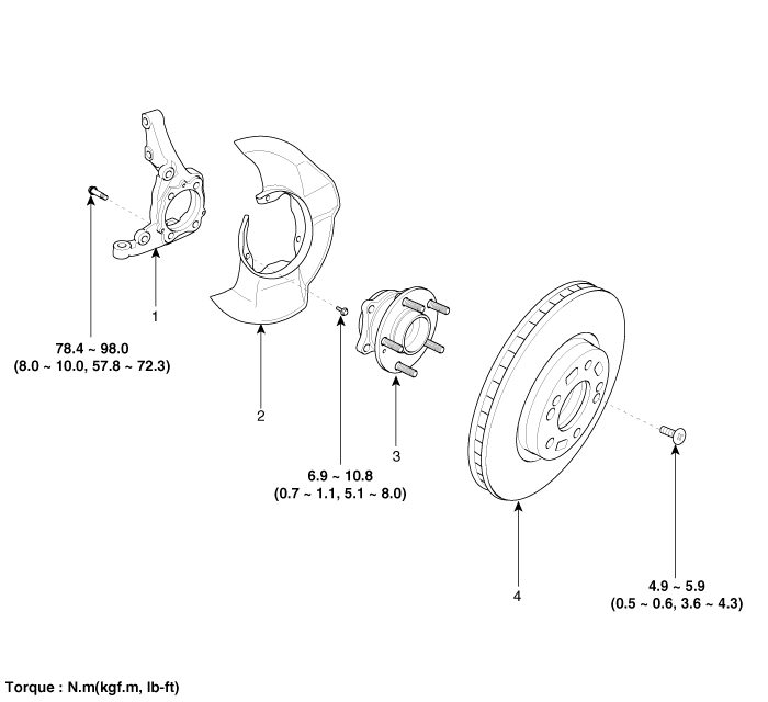 Kia Sorento: Front Hub / Knuckle / Tone Wheel Components