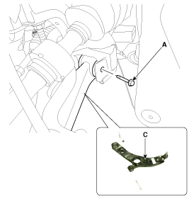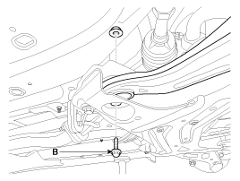 Loosen the bolt & nut and then remove the lower arm (A).