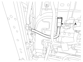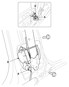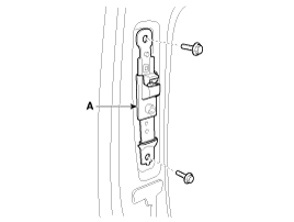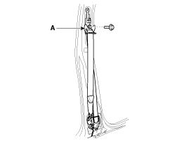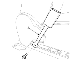 Remove the front seat belt anchor pertensioner cover pad (A).