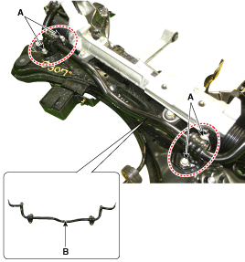 Loosen the bolt (A-4ea) and then remove the stabilizer bar (B)