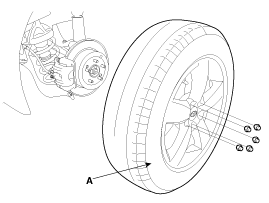 Disconnect the front strut assembly(A) with the knuckle by loosening