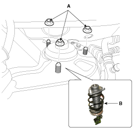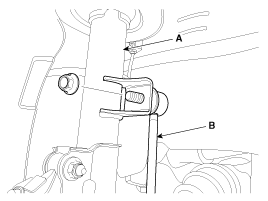 Disconnect the stabilizer link(B) with the front strut assembly(A)