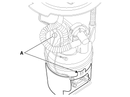 Release the fixing hooks (A), and then fuel filter & motor assembly