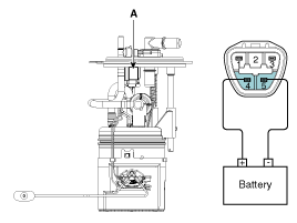 Check motor operation by fuel pump connector (A) connecting power
