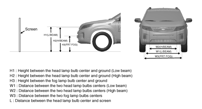 head lamp centers) and a horizontal line (Horizontal line passing through