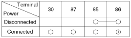 when power and ground are connected to the No.85 and No.86 terminals.
