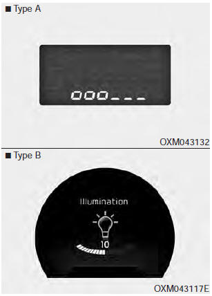 The brightness of the instrument panel illumination is changed by pressing the illumination control button ("+" or "-") when the ignition switch or Engine Start/Stop button is ON, or the tale lights are turned on.
