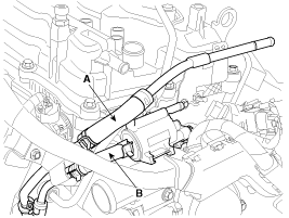 Disconnect the PCV (Positive crankcase ventilation) hose (A).