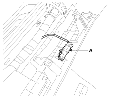 Remove the front seat belt anchor pertensioner cover pad (A).