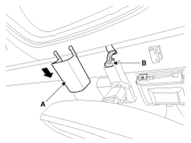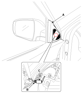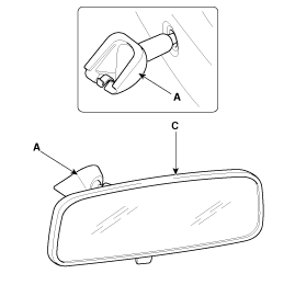 Push the inside rear view mirror base (A) up to remove the inside