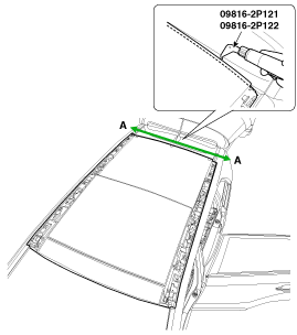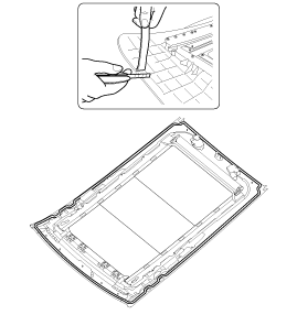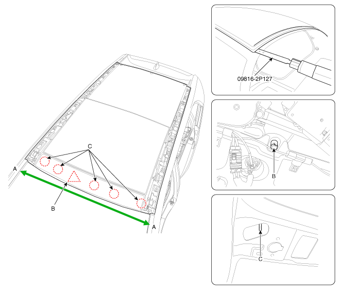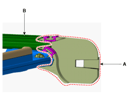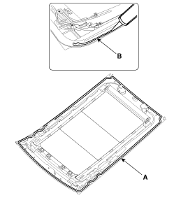 Apply sealant (B) on the panorama sunroof (A) with a sealant gun.