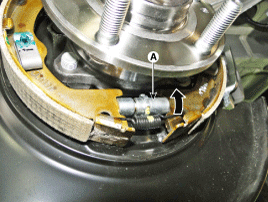 Install the rear brake disc, then adjust the rear brake shoe clearance.