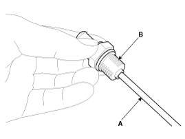 Insert a thin stick (A) into the PCV valve (B) from the threaded