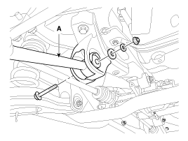 Loosen the bolt & nut and then remove the rear assist arm (A)