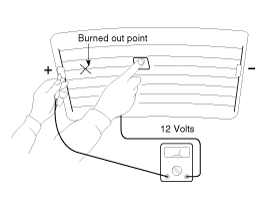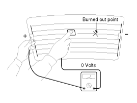 Turn on the defogger switch and use a voltmeter to measure the