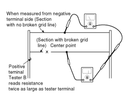 a broken heater line will have a resistance twice as that in other sections.