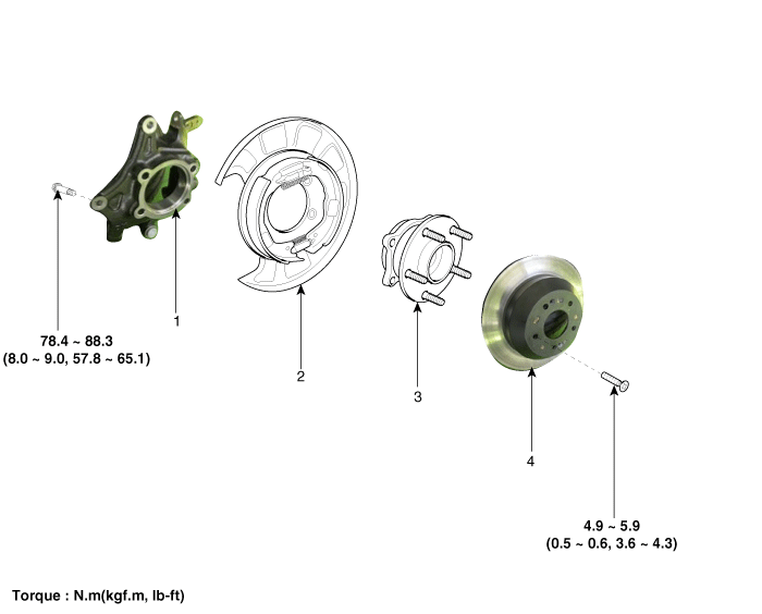 Kia Sorento: Rear Hub - Carrier Components - Rear Axle Assembly - Driveshaft and axle - Kia Sorento XM 2011-2025 Service ManualKia Sorento: Rear Hub - Carrier Components