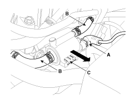 Disconnect the vapor hoses (B) from the purge control solenoid