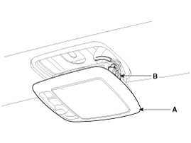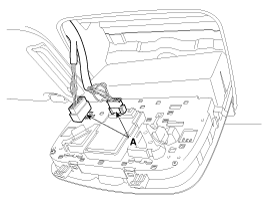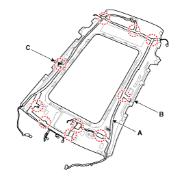 Remove roof trim wiring harness (A) from the roof trim (B).
